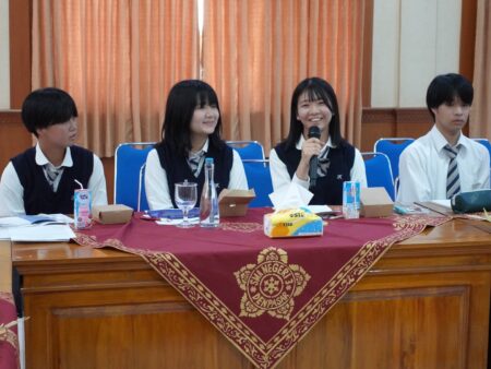 場面は変わり、ディスカッションの時間には、富山の高校生たちが、日本のゴミの分別回収について紹介しました。インドネシアの生徒たちは、決められた日にゴミを分別して出す日本の習慣に感心した様子で、「違った日にゴミを出した場合、ペナルティ(罰則)があるのか」という質問が出ました。富山県内では、主に町内会ごとに分別ゴミの管理が行われていて、曜日構わずゴミを出す事例は少ないです。富山の高校生たちにとっては当たり前のことで、罰則について意識したことがなかったようでした。分別回収が習慣化されているからですね。ゴミ処理ひとつとっても文化的背景により受け止め方が違うことを知る機会となりました。