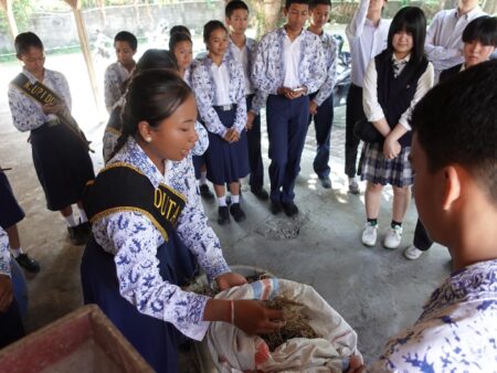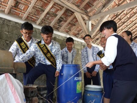 こうした状況を受け、バリ島の教育機関では、家庭から出る有機ゴミ(生ゴミ)を削減しようと、コンポストの普及が進められています。現地の高校(SMA Negeri 3 Denpasar)を訪問し、実際にその様子を見せてもらいました。