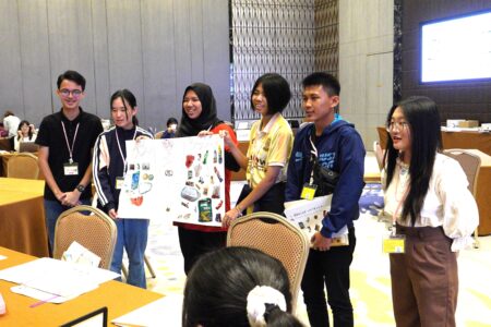 生徒プログラムは、「小さなこころがけ、大きな変化~ゴミ問題について私たちにできることは?~」をテーマに5日間のメインセッションを行いました。生徒は参加6か国から1名ずつ編成された多国籍グループに分かれて、到着日である1日目からグループ活動を開始しました。初日は多くの参加生徒が緊張していた様子でしたが、各グループに元気で明るいタイ人中等教師がファシリテーターとして入ったこともあり、少しずつ緊張がほぐれていったようです。