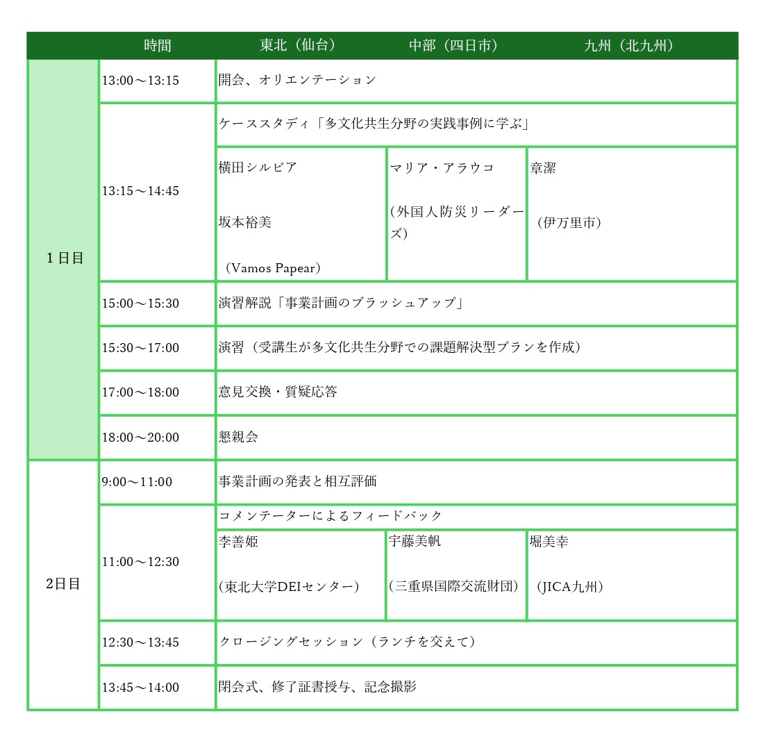 まず本年度は、地域の担い手に必要な多文化共生分野の知識と、組織や事業のマネジメントに必要なスキルを学ぶ研修の場として、一般財団法人ダイバーシティ研究所のご協力のもと「かめのり多文化共生塾2025」を2025 年9月29 日(月)~9月30日(火)に仙台、2025年11月13日(木)~14日(金)に四日市、12月8日(木)~9日(金)に北九州にて行いました。